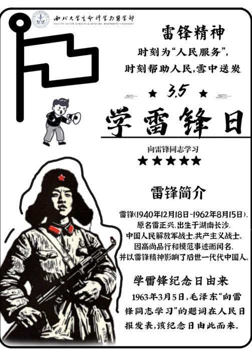 今年3月5日是全国第58个“学雷锋纪念日”。雷锋精神,是以雷锋的名字命名,以雷锋的精神为基本内涵,在实践中不断丰富和发展着的革命精神。半个多世纪以来,雷锋精神历久弥新,如今其更是成为了全心全意为人民服务的代名词。为了宣传弘扬雷锋精神,让雷锋精神不断绽放出新的光芒,西北老员工命科学与医学部于当天开展系列志愿活动,传承革命精神。