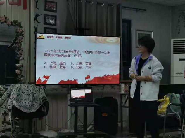 接着,进行了党史知识竞赛环节。知识竞赛分为初赛和决赛两轮,题目紧紧围绕“党史中的重要时间节点和重大会议”。同志们积极参与回答,现场气氛活泼热烈。最终,郝锦程、尚波、王璐、何雨馨、孙明轩、石娟六位同学表现优异,获得奖励。大家在进行知识竞赛的过程中,不仅增长了知识,而且又进一步的了解到中国共产党的这一段奋进史的伟大,这也将激励着大家不断前进。