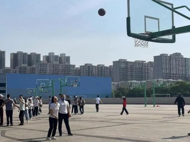 小小的一颗球,寄托着希望,奋力一抛的瞬间,一道闪亮的弧线划破美丽的长空。陈林、黄萱等老师目光坚定地进行着“一分钟投篮”比赛