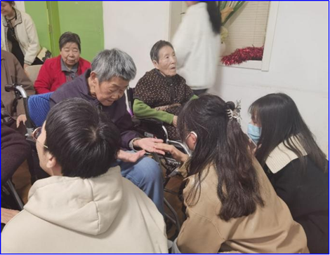 临走前,志愿者们与老人们聊起了天,仿佛和自己的爷爷奶奶聊天一样,聊着老故事,他们的家乡,爷爷奶奶们还关心志愿者的生活中困难和迷茫,用他们丰富的生活经历帮助开解志愿者们。