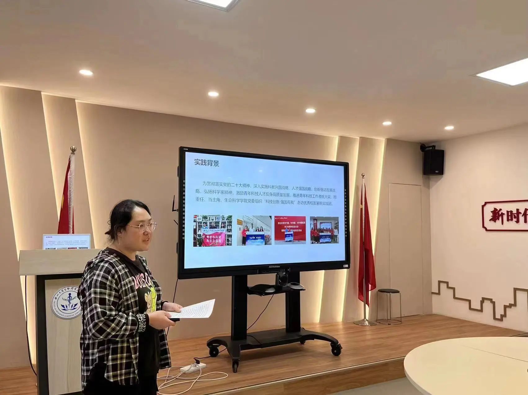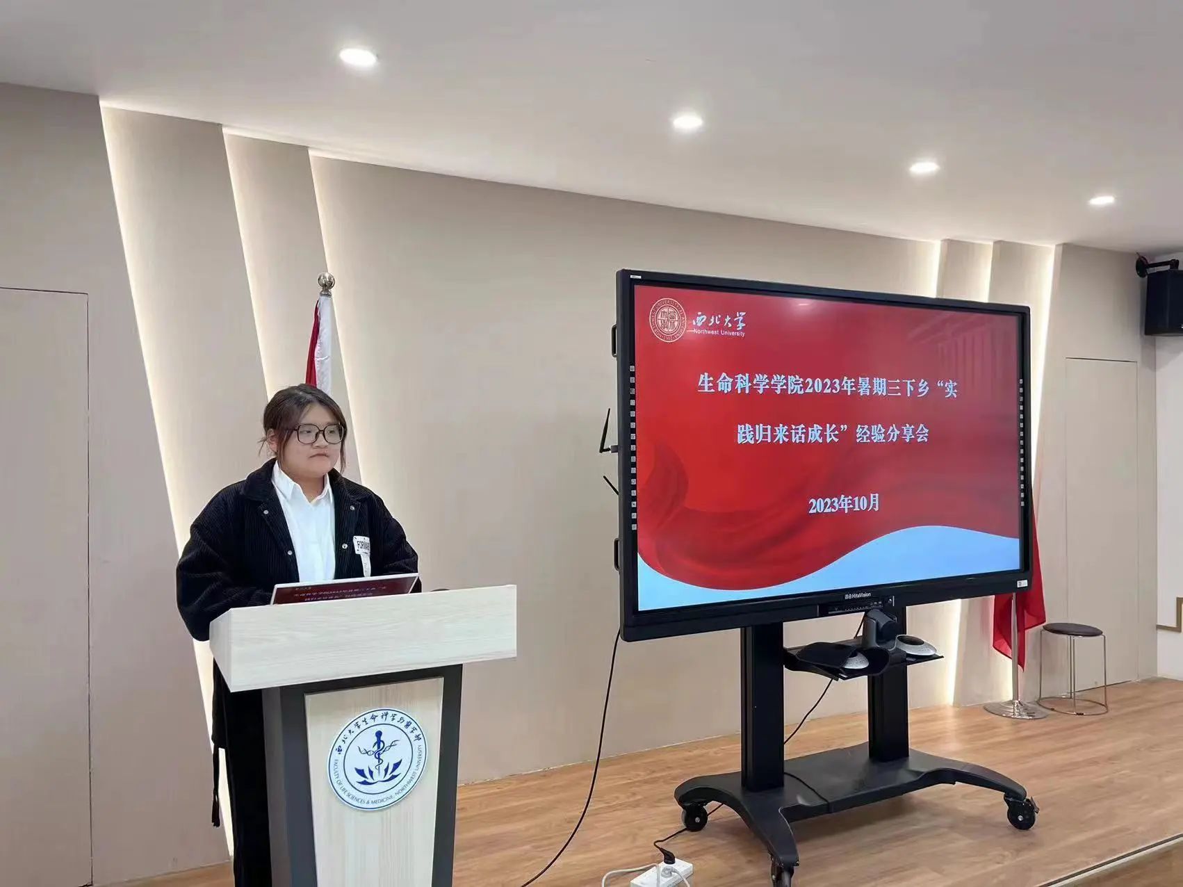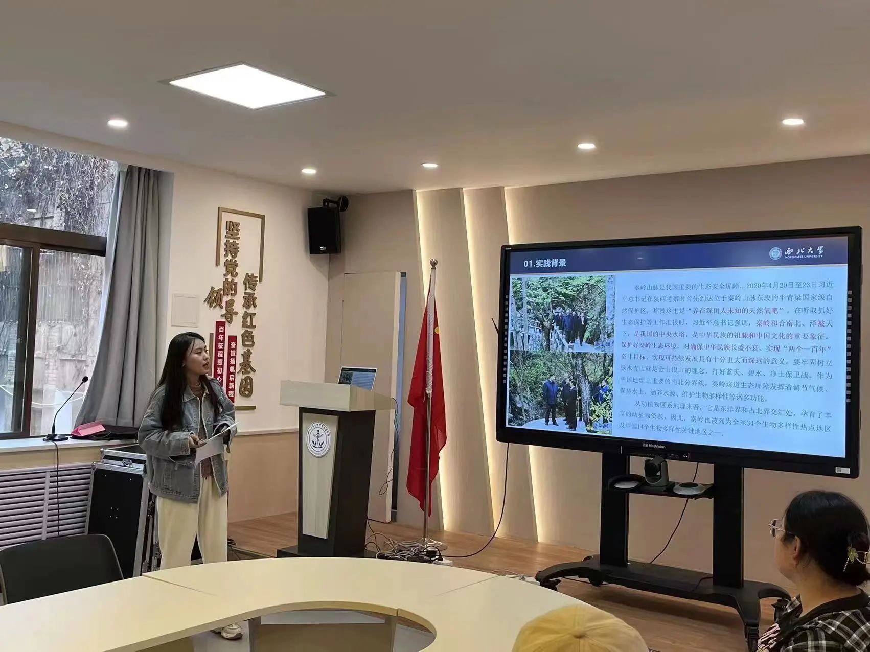 随后,由“以劳润心,守卫秦岭”——守望秦岭实践队,以“科技发展助力生态文明建设,为美丽中国建设奠定坚实的绿色根基”为主题,团队负责人马佳雨为同学们展示了团队前往陕西省牛背梁国家自然保护区的老林保护站所开展为期三天的暑期社会实践活动,围绕体验护林员工作、学习红外相机检测、教当地员工制作标本等活动,通过对护林员的专访,团队成员体会到护林员“择一事,终一生”的奉献精神。详细讲解了在开展志愿服务活动的前中后期各阶段所应该完成的具体工作,强调了及时撰写新闻稿的重要性。