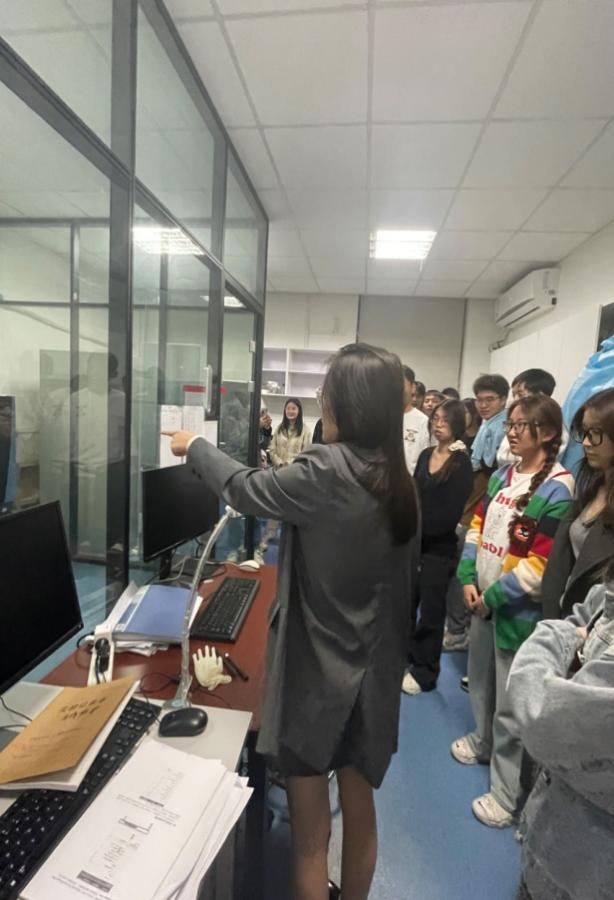 分享会结束后,孙士生老师还带领同学们参观了公司的实验室。在实验室里,大家亲眼目睹了学长学姐们进行科研实验的场景,感受到了浓厚的学术氛围。孙老师团队还详细介绍了实验室的仪器设备、科研项目以及实验室的日常管理等内容,让同学们对研究生阶段的学术生活有了更加直观的了解。