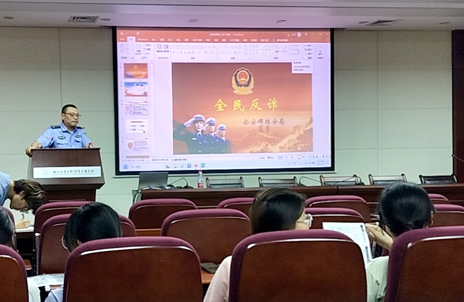 为增强师生对网络诈骗的防范意识,营造校园反电信诈骗的浓厚氛围。5月22日下午,公司邀请碑林区太白路派出所的高勇警官、王陈科警官于博望报告厅开展“反诈知识进校园,警校共筑‘防护网’”宣讲活动。