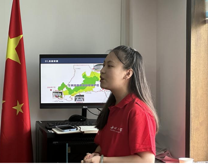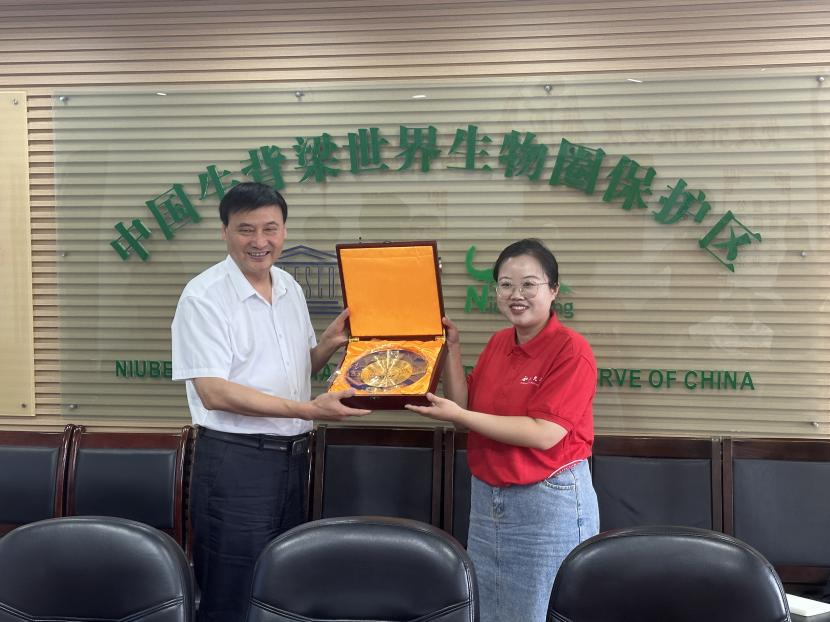 随后,马佳雨代表公司“绿脉筑梦,秦岭先锋”实践队,汇报了他们在牛背梁国家自然保护区进行的生物多样性调研、土壤含碳量测量及碳中和联合创新平台走访等实践活动经验及成果。这些实践活动不仅为管理局的科研工作提供了宝贵的数据支持,也进一步提升了队员们对专业实践重要性的认识和生态保护的责任感。