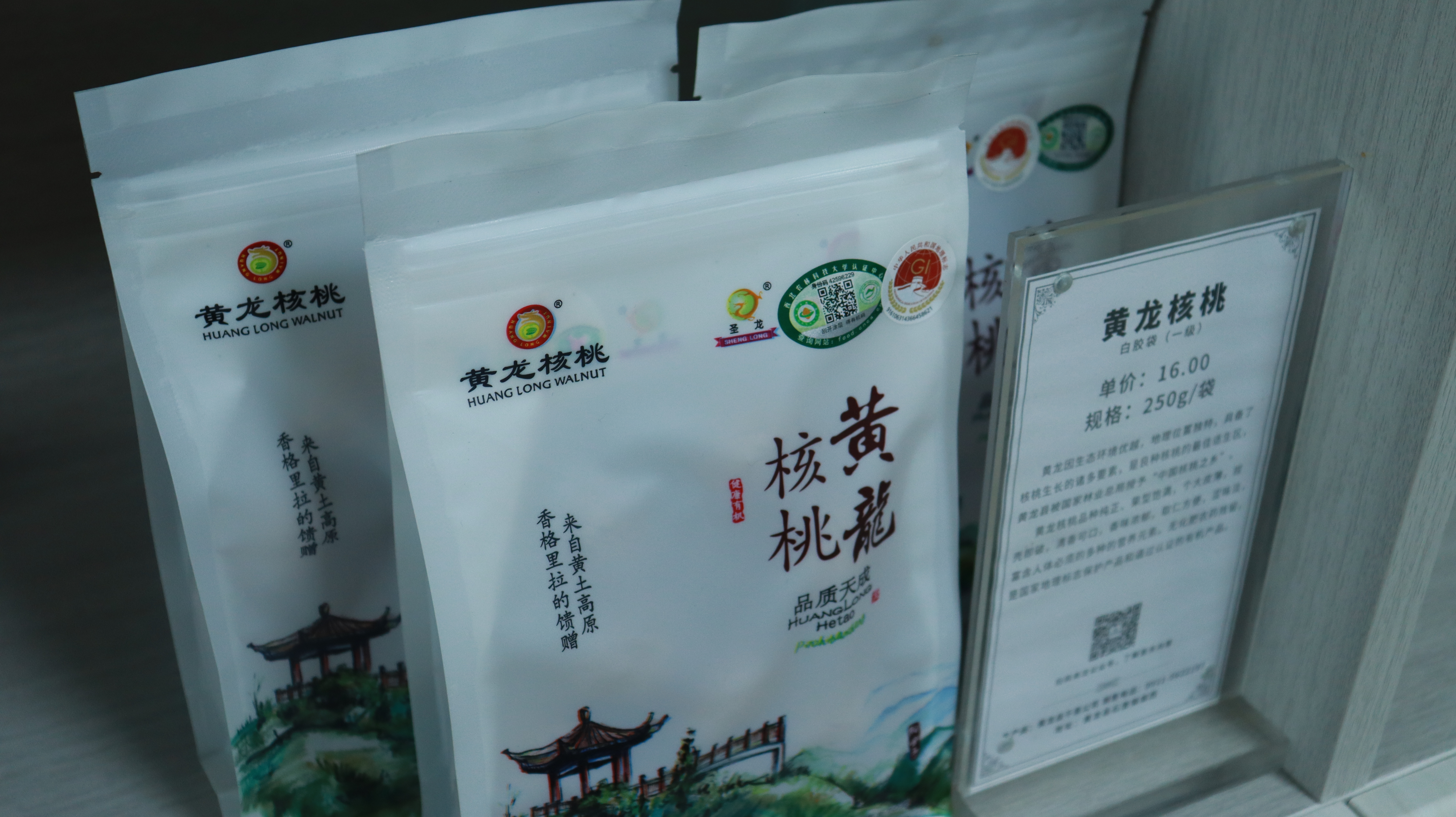 实践队前往黄龙县干果公司,探求核桃产业下游发展,了解核桃产品深加工形式。队员们看到了琳琅满目的核桃产品,包括干果核桃,核桃油,炒核桃仁,还有许多黄龙当地的其他农产品:羊肚菌、松茸菇、五谷、黄龙蜂蜜。2023年,黄龙县干果公司销量共计500万元。