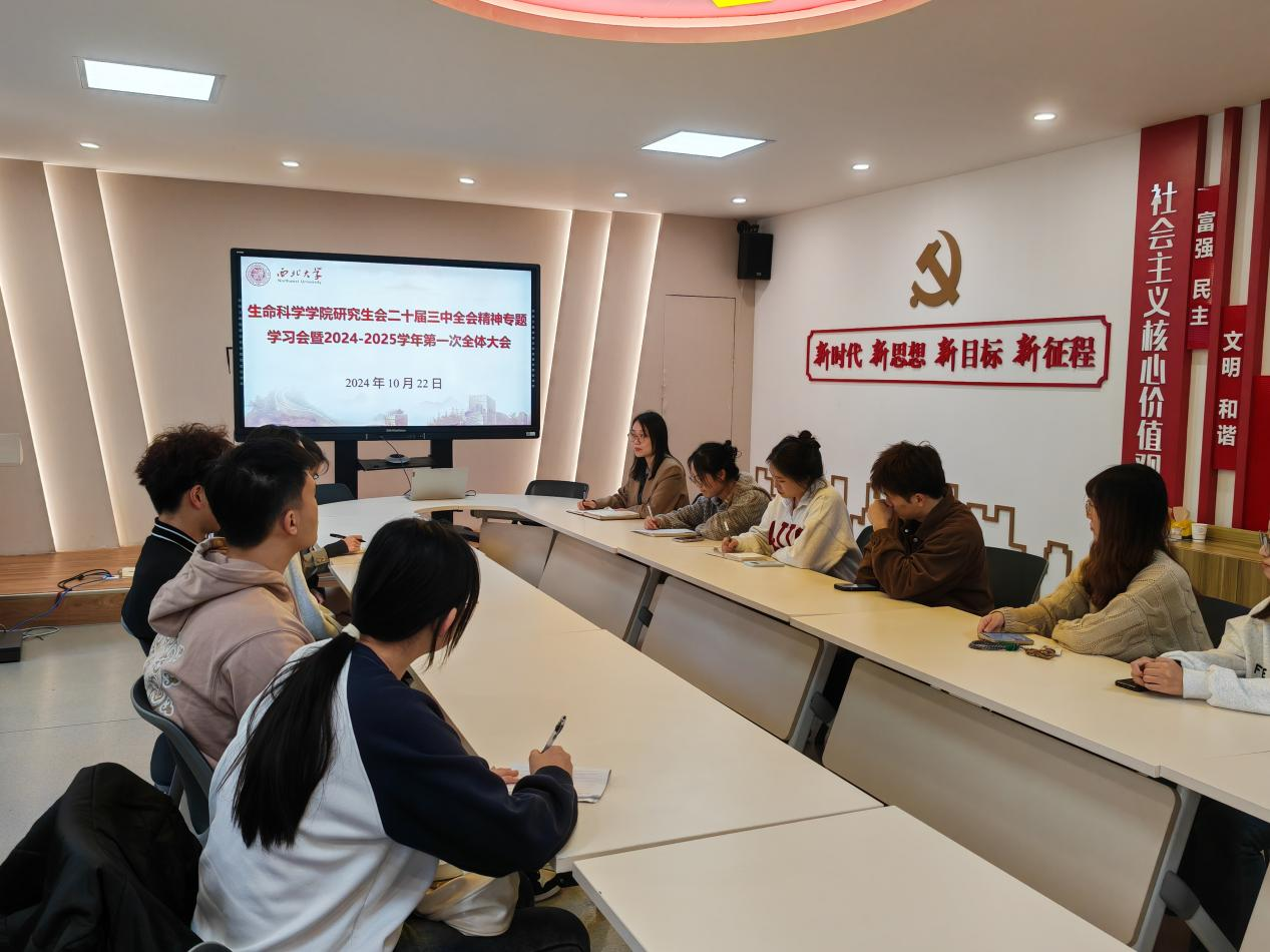 10月22日下午,十大外围足球平台app研究生会二十届三中全会精神专题学习会暨2024-2025学年第一次全体大会在博雅会议厅召开,辅导员张芝榕、院研究生会各部门负责人参加了此次会议。
