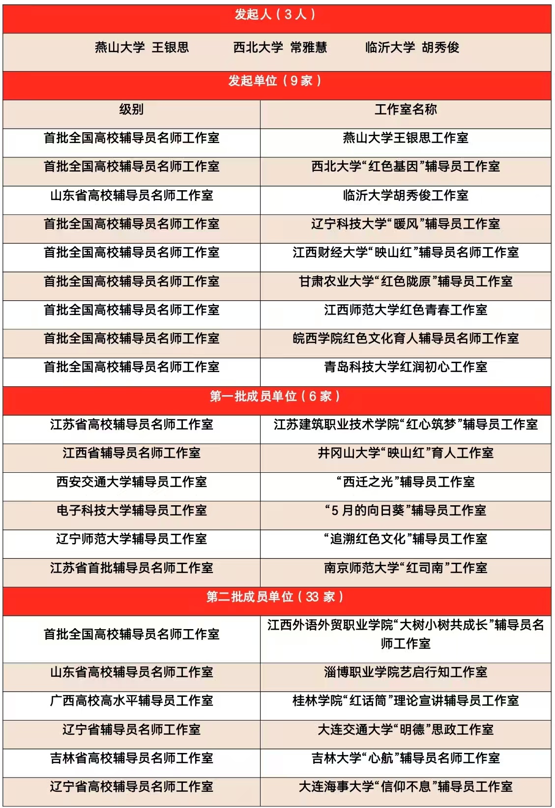 “红色文化育人”辅导员工作室共同体成员名单