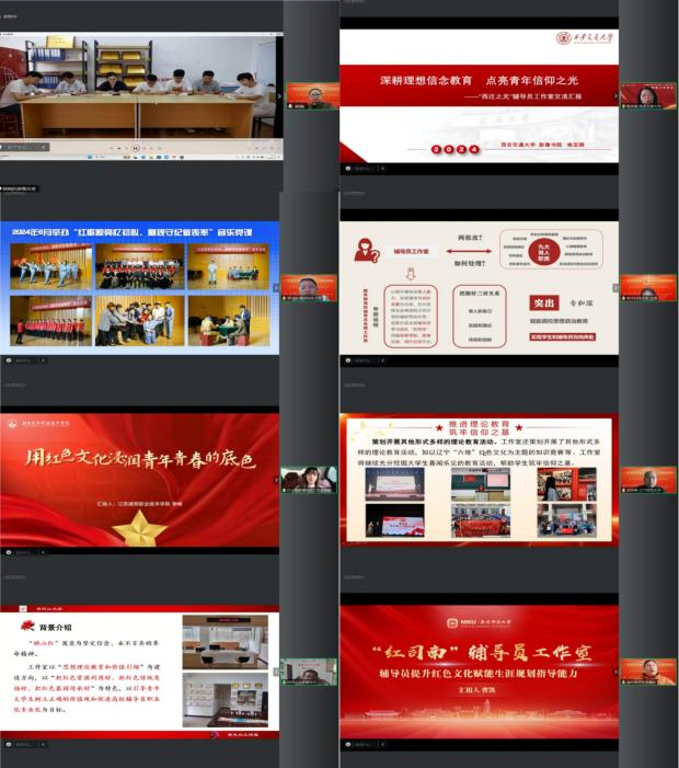 “传承红色基因 培育时代新人”高校辅导员工作室交流研讨活动由江西师范大学付妍妍、甘肃农业大学刘博、皖西公司韩梅、青岛科技大学贾可好分阶段主持。15位一批成员单位主持人,分享了各自工作室在红色教育、党建工作、团队建设等方面的特色亮点和经验做法。随后,百余名与会人员围绕红色文化协同育人、沉浸式红色教育课程设计、红色资源联动、党建+工作模式、创新团队激励机制等议题展开深入探讨,辅导员工作室主持人代表纷纷表示,将以本次活动为契机,凝聚智慧,汇聚力量,努力构建优质交流合作平台,完善红色文化协同育人机制,为全国高校系统性构建红色文化育人资源体系、创新性开展高校红色文化育人实践、协同性推进红色文化传播贡献力量。