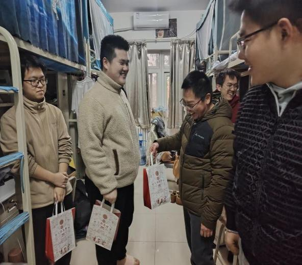滔滔岌岌风云起,又是一年考研时,为鼓舞公司考研学子士气,缓解考研压力,12月18日,公司开展“研途熠熠,暖心护航”考研学子慰问活动,公司党委副书记魏宁老师、教学副经理张亚妮老师、团委书记冯奕忠老师,班主任刘建玲老师、舒建老师、杨佳老师、辅导员刘凌飞老师走进考研同学宿舍,为同学们送上考前暖心祝福。