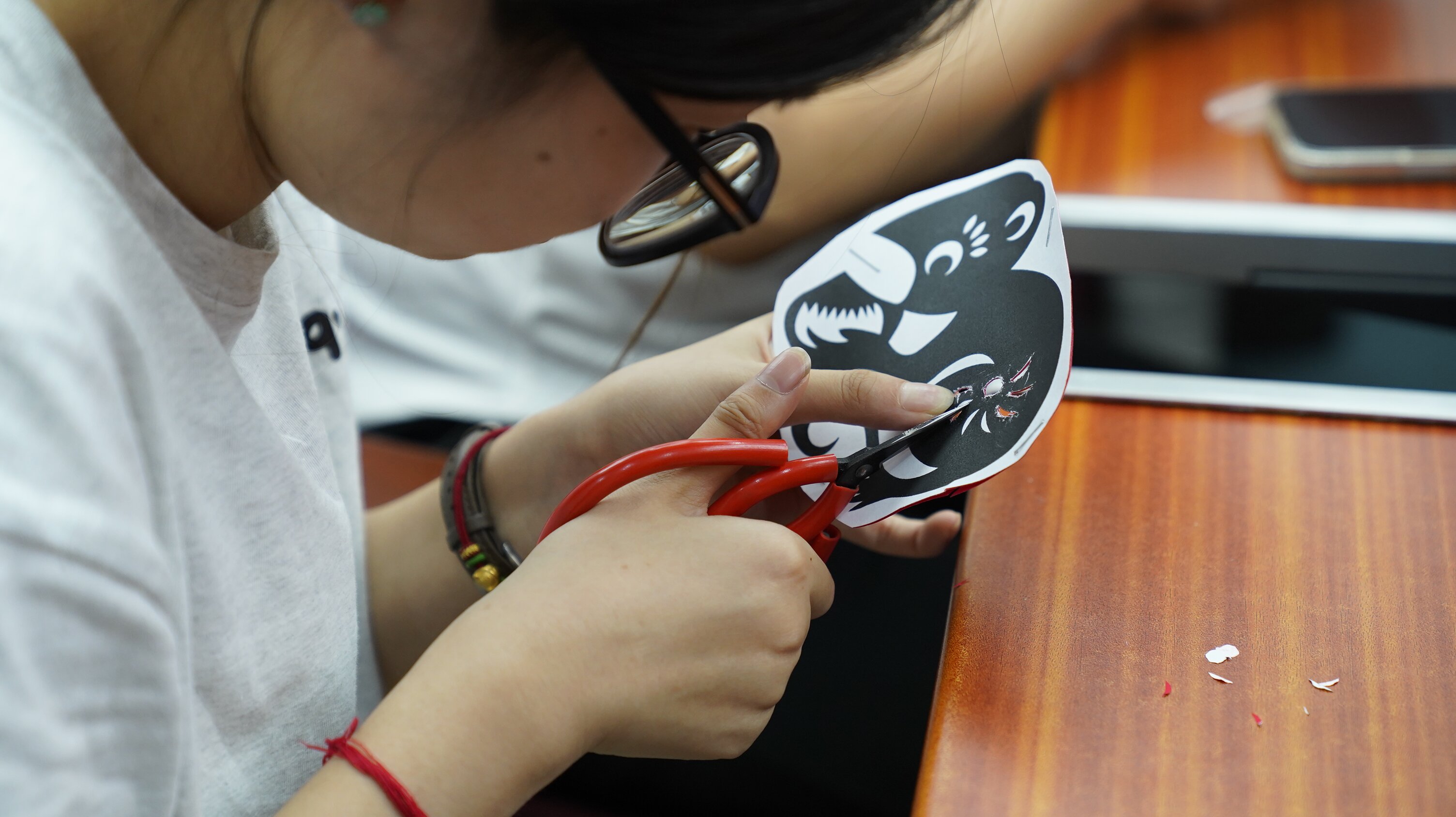 在剪纸实践环节,同学们亲自动手,以剪刀为笔,红纸为卷,沉浸式体验传统艺术的独特魅力,于指尖翻飞间感受非遗传承的温度。