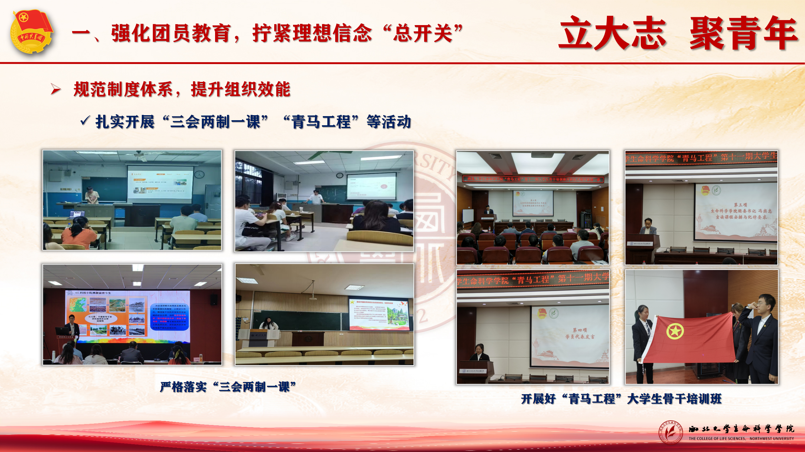 促就业,帮青年。整合资源,通过联盟团委举办陕西高校生物类专场招聘会;加强政策宣传和就业指导帮扶,全面提升团员青年就业力。通过青马班、团课融入国家发展需求,强化职业价值观教育。