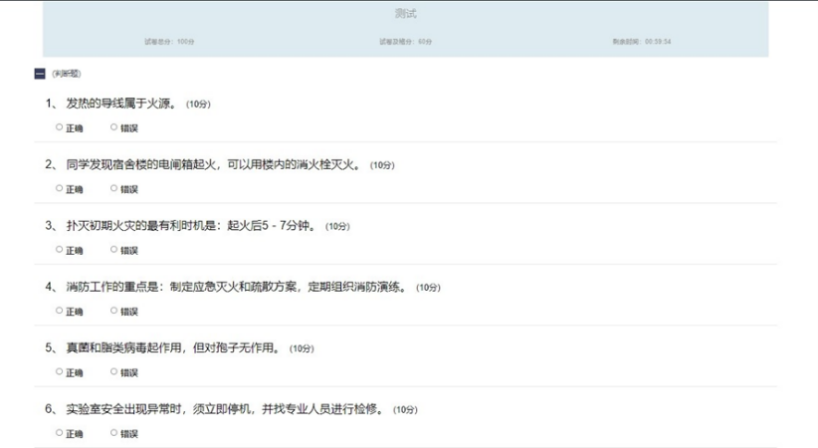 竞赛题目主要围绕实验安全、生物医药安全、基础实验操作出题,题型分为单选题、多选题和判断题,答题结束后由系统计算最终得分。答题人按要求在线上进行答题,并在规定时间内完成相关题目的作答。