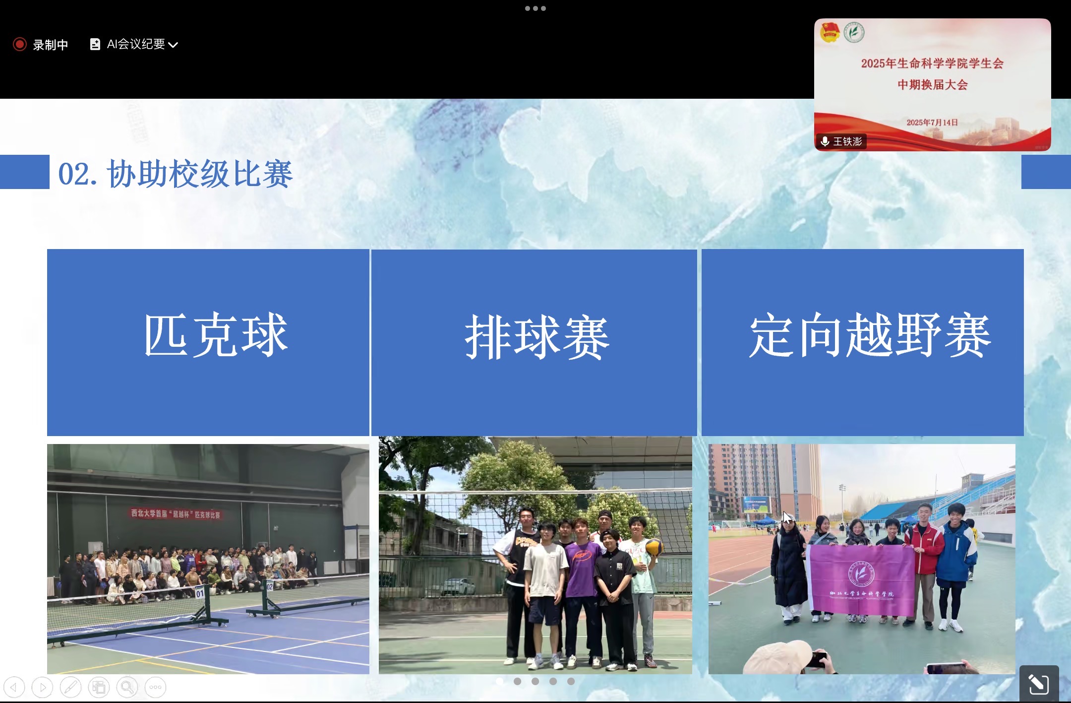 体育部负责人王铁澎总结部门工作:举办公司3+2篮球赛、院运会、乒羽赛,组织运动员体检,协助排球赛、定向越野赛和匹克球比赛等各类校级赛事的举办。