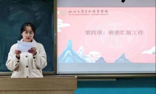 团支书雷天佳汇报了班级团员关系转接情况与近期同学们青年大学习的学习情况。同时,她也给同学们分享了她担任团支书以来的一些感受:“大学阶段的班级团支书,简单地表达感受,便是苦并快乐,充实又繁忙。可以说,团支书的工作真是磨平了我的棱角,但是却让我有了更多的耐心以及学会了更多待人处事的经验。我作为团支书,便一定会竭尽全力服务同学、团结班委,继续发扬团结拼搏的精神,共同努力,再创佳绩,将生科生态班团支部这个大家庭建设得更加和谐,更加温暖。”