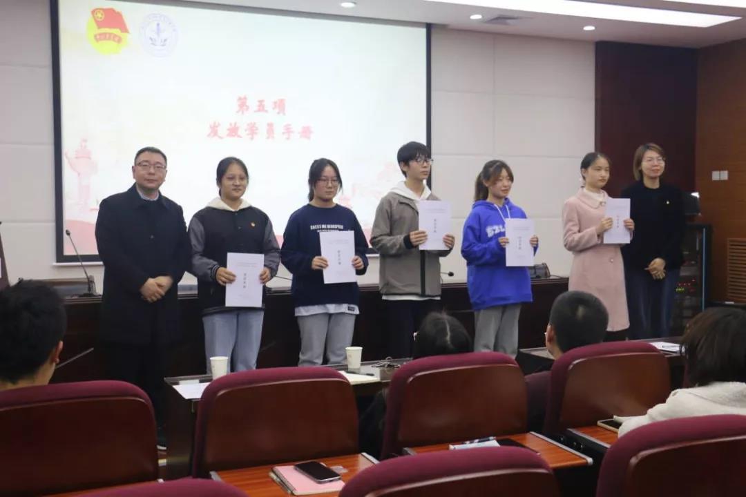 校团委副书记曹智和医公司党支部(直属)副书记杨涛为学员代表发放了学员手册。