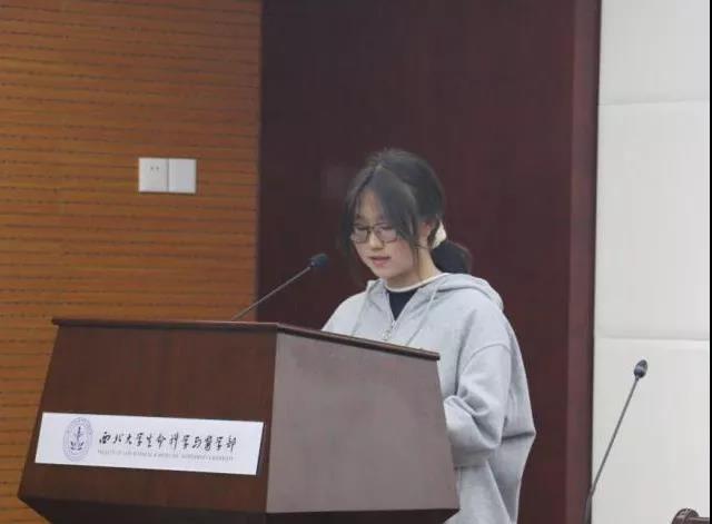 2020级生物医学科学专业杨雯铄、2021级药学2班班长谢雨欣作为本期青马班员工代表发言。杨雯铄代表全体学员表态严格按照要求完成学习任务,坚定跟党走,在树立崇高理想的基础上誓做马克思主义理论的青年实践者;谢雨欣从自身实际出发,号召同学们珍惜学习时光,坚定中国特色社会主义道路的信念,努力成长为中国特色社会主义事业的合格建设者。