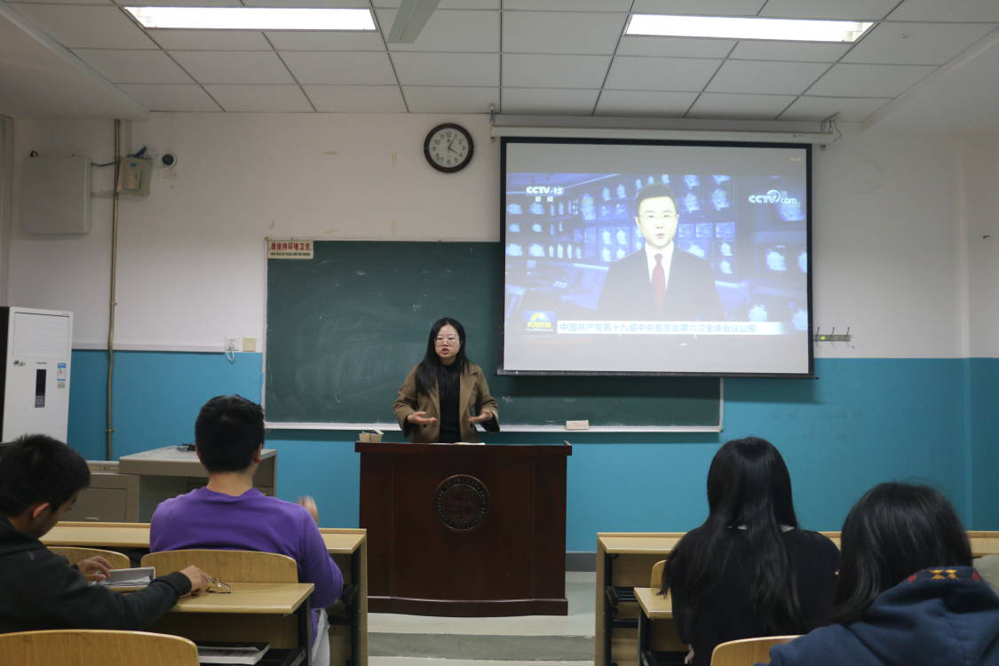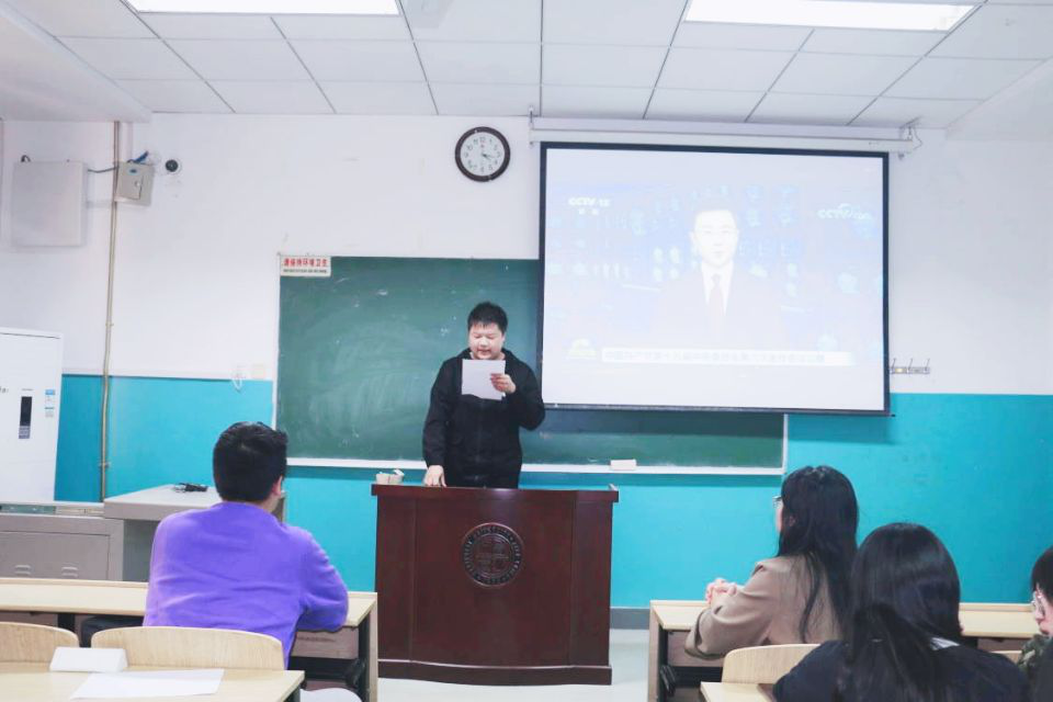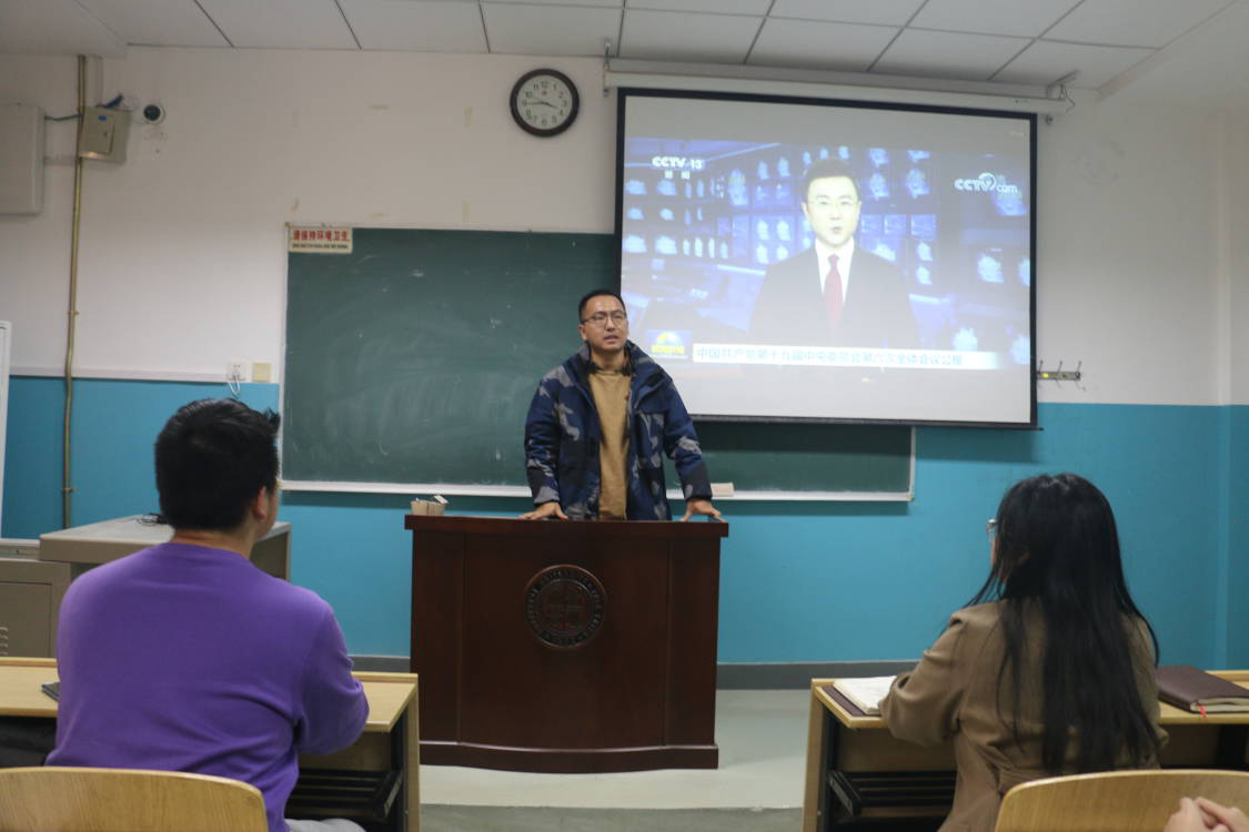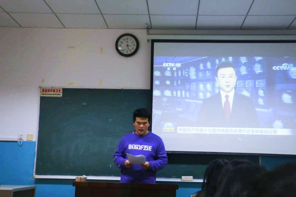 活动伊始,团支部书记屈皓东为在座师生播放十九届六中全会新闻,并领学会议公报,号召青年员工以建党精神为笔,绘制坚守信仰、奋斗不息、努力拼搏、为国奉献的青春画像。