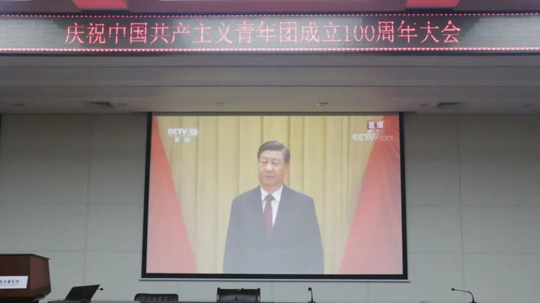 师生们认真聆听习近平总书记在庆祝大会上的重要讲话。习近平总书记的重要讲话饱含了党中央对青年一代的亲切关怀和对共青团事业的高度重视,为广大青年指明了奋斗目标和前行方向,为做好新时代青年工作提供了根本遵循。党旗所指就是团旗所向,党的奋斗主题就是团的奋斗方向。
