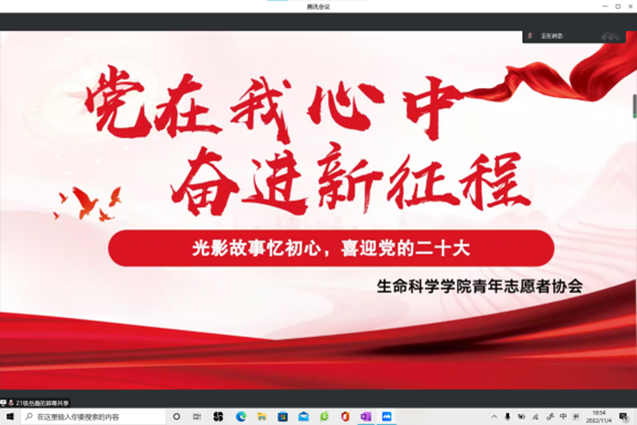 为深入学习贯彻党的二十大精神,涵养生科学子深沉炙热的家国情怀,坚定生科学子爱国爱党的信念。11月4日晚,公司员工青年志工部以线上的形式开展了“光影故事忆初心,青春献礼二十大”主题观影活动,100余名团员青年们积极参加。
