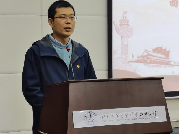 2021级生物科学张旭东带领青年团员们重温了入团誓词。