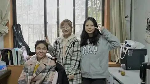 第一张是我们全宿舍在第一次出门团建时拍的照片,这时的大家脸上都还有刚进去大学的青涩与第一次团建的快乐,这是我们回忆里珍贵的一幕;第二张拍于校运会期间,我们在中午休息期间在益禾堂小坐,这时的大家脸上的青涩已经褪去,这也是我们首次集体去长安校区,大家都满心的激动和愉快。
