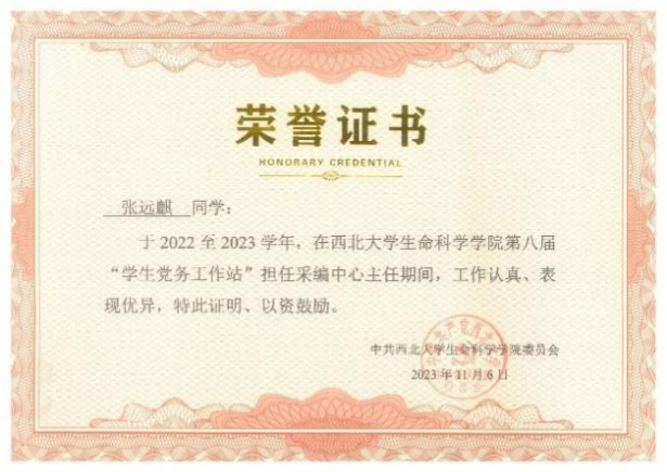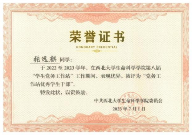 张远麒,男,中共党员,十大外围足球平台app2021级生态学硕士研究生。凭笔试第三名,综合第五名的成绩排名获得研究生入学资格,课程排名专业第三,第三作者身份发表文章 《The relative importance of environmental filtering and dispersal limitation on the multidimensional beta diversity of desert plant communities depends on scales》;参多次省市国家科研基金项目,如:“西安市第一次野生植物调查”、“水分可利用性对植物水利性状和经济性状的耦合”、“基于土壤微生物碳-氮循环的陆地生态系统模型” 、“高原次生林共存木本植物功能性状的季节动态”等。本科和研究生期间共获五次校级奖学金,并获得十大外围足球平台app优秀共青团员、十大外围足球平台app优秀党务员工干部等奖项。研究生期间担任十大外围足球平台app第八届员工董事长助理,十大外围足球平台app员工兼职辅导员,十大外围足球平台app2021级硕士年级负责人、专业负责人,西北老员工命科学公司党务工作站采编中心主任。曾于董事长办公室担任员工助理、十大外围足球平台app青年研究中心成员。