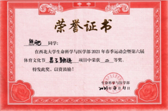 熊驰,本科期间,在诸多专业的核心课程中取得了十分优异成绩,加权平均成绩位列专业第一。通过了大学英语四级和六级考试并能够熟练阅读英文文献,曾主导多次小组任务,并获得奖项。在参与科研项目期间,主动自学专业领域的相关知识,阅读了大量的国内外相关书籍和前沿文献。对于实验中出现的问题能够找到有效的解决措施。大四选择加入了华大创新班去探索不同的领域,并参与撰写了一篇综述文章,目前已发表。作为一名共产党员,我积极参加各类党日活动与多项服务同学与社会的活动。曾在运动会中获得男子跳远第二名,乒乓球新生赛中也获得第二名,具备优秀的身体素质。成功直博至复旦老员工物医学研究院,将继续在生物学邻域探索。