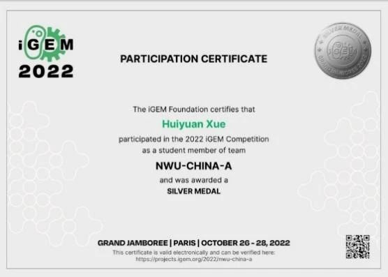 薛荟元,在思想上,积极上进,热爱祖国,关心集体,拥护共产党的领导,遵守国家法律法规及各项规章制度。在学习上:刻苦钻研专业知识,成绩排名为1/35,获得校级一等、二等奖学金等荣誉;积极参与科研,获得2022年、2023年iGEM(国际基因工程机器竞赛)国际级银奖,全国老员工生命科学竞赛国家级二等奖等奖项,作为负责人参与老员工创新创业训练项目省级项目。在工作中,认真负责,积极完成校级红帆社团、院采编部以及iGEM社团的相关工作,取得较为优异的成绩。在生活中,乐于助人,积极参与班级集体活动、献血活动,拥有集体荣誉感和社会责任感。