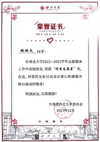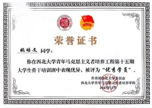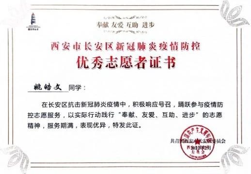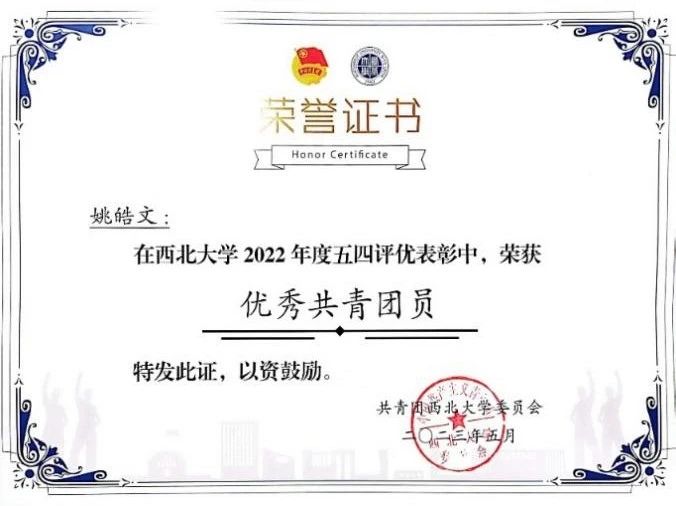 姚皓文,男,中共预备党员,甘肃兰州人,2020级生科生态班本科生。曾任十大外围足球平台app团委青年志愿者工作部副部长。入选陕西省青马工程第十七期高校班。获十大外围足球平台app一等奖学金1次、优秀员工干部奖学金1次、优秀员工干部、优秀共青团员、优秀志愿服务工作者、陕西省“百千万校园行”优秀志愿者、2021-2022疫情防控优秀志愿者、抗击新冠肺炎疫情优秀志愿者。