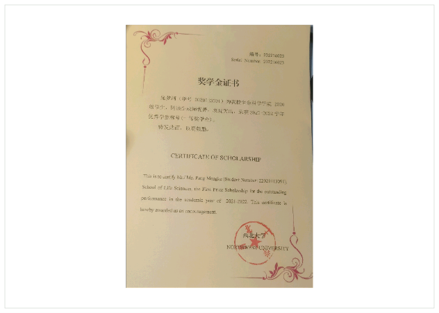 孟逸斐,女,中共党员,陕西渭南人,2020级生命科学与技术(基地班)本科生。四年学习中,加权均分86,GPA3.56/4.0,专业排名班级第九,顺利通过英语四六级考试,现任班级心理委员,曾担任“筑梦先锋”本科党支部材料组组长,获2022年国际基因工程机器大赛(iGEM)银奖,“互联网+”老员工创新创业大赛校级铜奖、十大外围足球平台app手语操比赛校级三等奖、国家励志奖学金、十大外围足球平台app二等奖学金、十大外围足球平台app“优秀员工干部”奖学金、十大外围足球平台app三等奖学金等。大一大二学年,积极参与校运动会、健康杯、公司新生篮球赛、“3+2”篮球赛、院运动会等活动,加入志愿者协会和就业服务协会,累计志愿时长15h+,党内义工时长累计48h+,大四学年加入创新班前往深圳华大基因进行为期一年的学习。现已保送至南开大学。