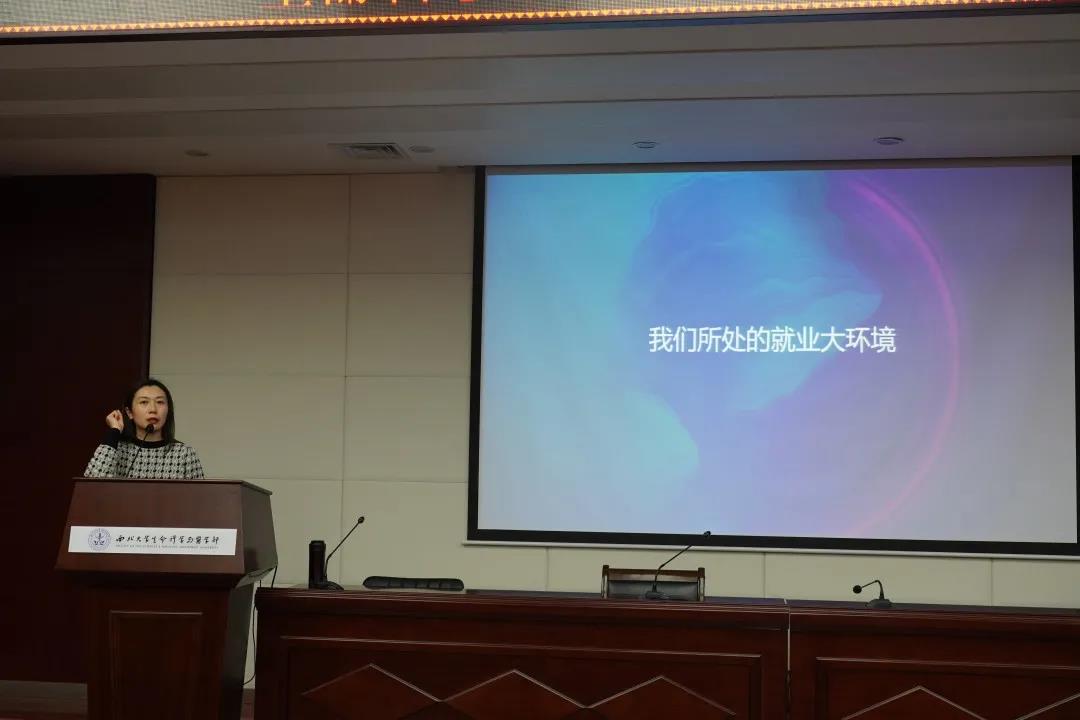 会议开始,郭佳惠老师首先向大家说明了本次促进会召开的背景及意义,并介绍了本次参会的嘉宾。随后,丁莹老师向大家分享了题为“主动出击,直面就业”的专题报告。