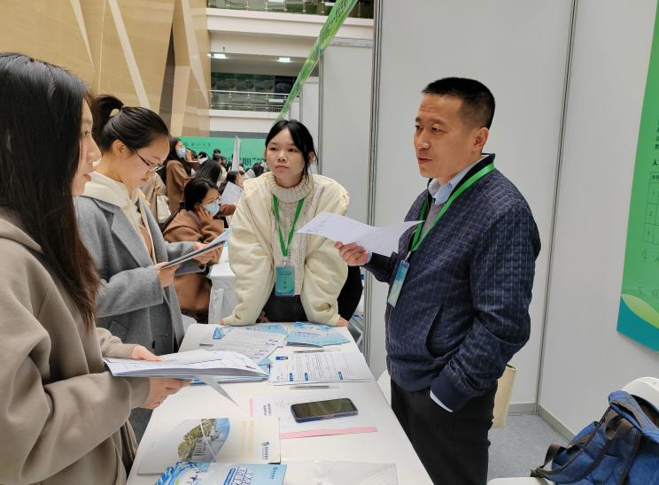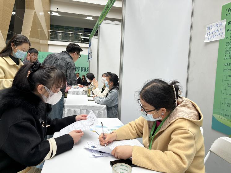 陈富林副董事长及有关负责人与参会单位、求职员工亲切交流,详细了解企业简况和人才需求,询问员工求职情况,并向企业热情推荐优秀毕业生。张宇书记、付爱根经理、员工工作负责人魏宁、就业专干郭佳惠积极与上海皓元医药股份有限公司、西安万类秦元生物科技有限责任公司、深圳市朗坤环境集团股份有限公司、迪安诊断技术集团股份有限公司、西安博睿康宁生物医学中心有限公司、陕西梅里众诚动物保健有限公司、广西壮族自治区中国科公司广西植物研究所、陕西脉元生物科技有限公司、清华德人西安幸福制药有限公司9家公司现场洽谈,充分了解各企业基本情况、人才需求、招聘现状与下一步合作意向,针对人才输送、创新创业、校企合作等事宜进行了充分讨论。