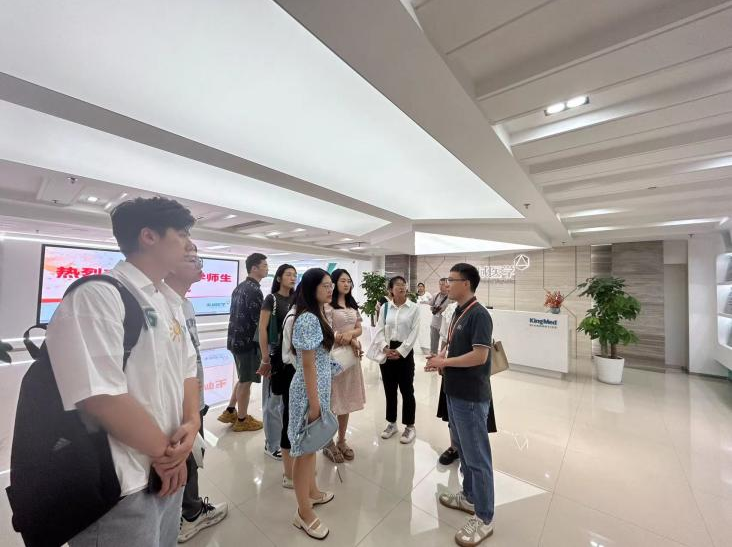 在西安金域医学检验所有限公司,有关负责人首先带大家走进公司员工工作区、餐饮区、健身区、休闲区等,亲切分享公司的企业文化、发展历程、企业荣誉,随后逐一参观公司生化发光、免疫、基因、质谱、病理等各大实验技术平台,详细介绍公司医检体系、肿瘤检测体系等运营模式、业务范围、运作优势。张亚妮副经理、郭佳惠老师亲切慰问了已就职于金域医学的毕业生代表。交流环节,双方回顾了扎根多年的合作情谊,对进一步加深产学研合作、推动成果孵化和科技创新表示期待。郭佳惠老师分享了2023届毕业生的当前就业情况,询问了公司的职位需求,张亚妮副经理表示,金域医学作为粤港澳大湾区的代表企业,长期聚焦医检主业,引领国内临床医学检验和病理诊断行业发展,希望能继续依托金域的技术平台和医检人才培养优势,进一步围绕人才培养、人才供需对接、科研项目攻关、产学研融合等产出更多合作成果。最后,参访毕业生在公司人事的安排下,现场投递简历并面试,基本确定了双选意向。
