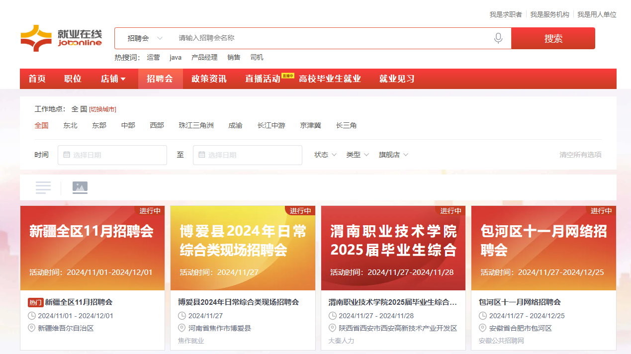 由人力资源和社会保障部组织建设的国家级招聘求职服务平台,实现招聘求职信息实时、全面共聚、共享和发布,并支持跨区域、跨层级开展招聘和求职服务。