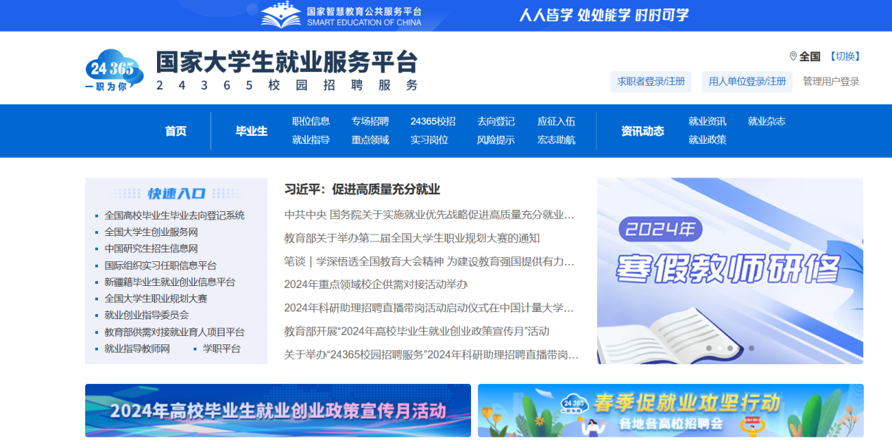 由中华人民共和国教育部主管、教育部员工服务与素质发展中心运营的公共就业服务平台,为高校毕业生和用人单位提供优质的“互联网+就业”服务。