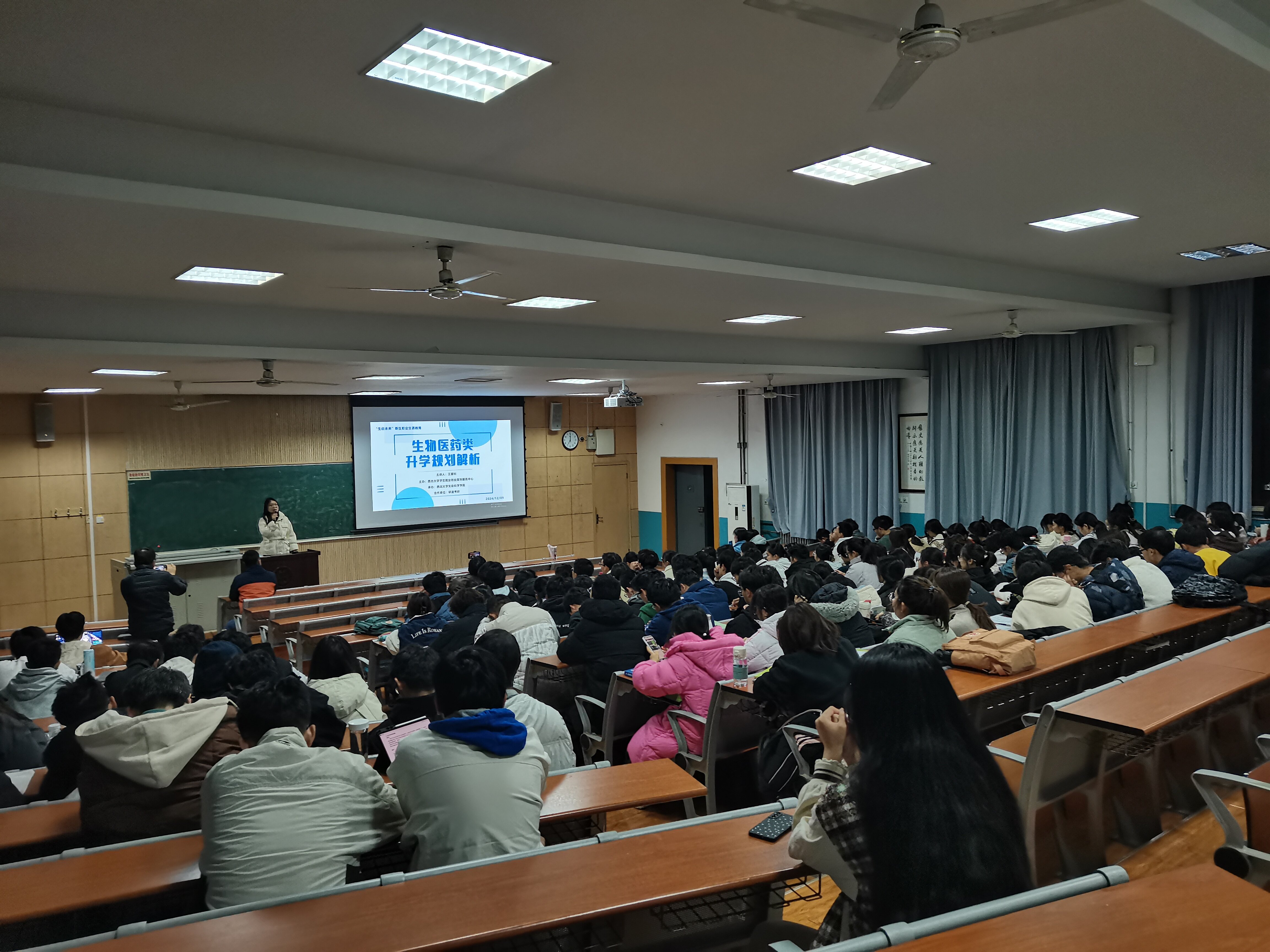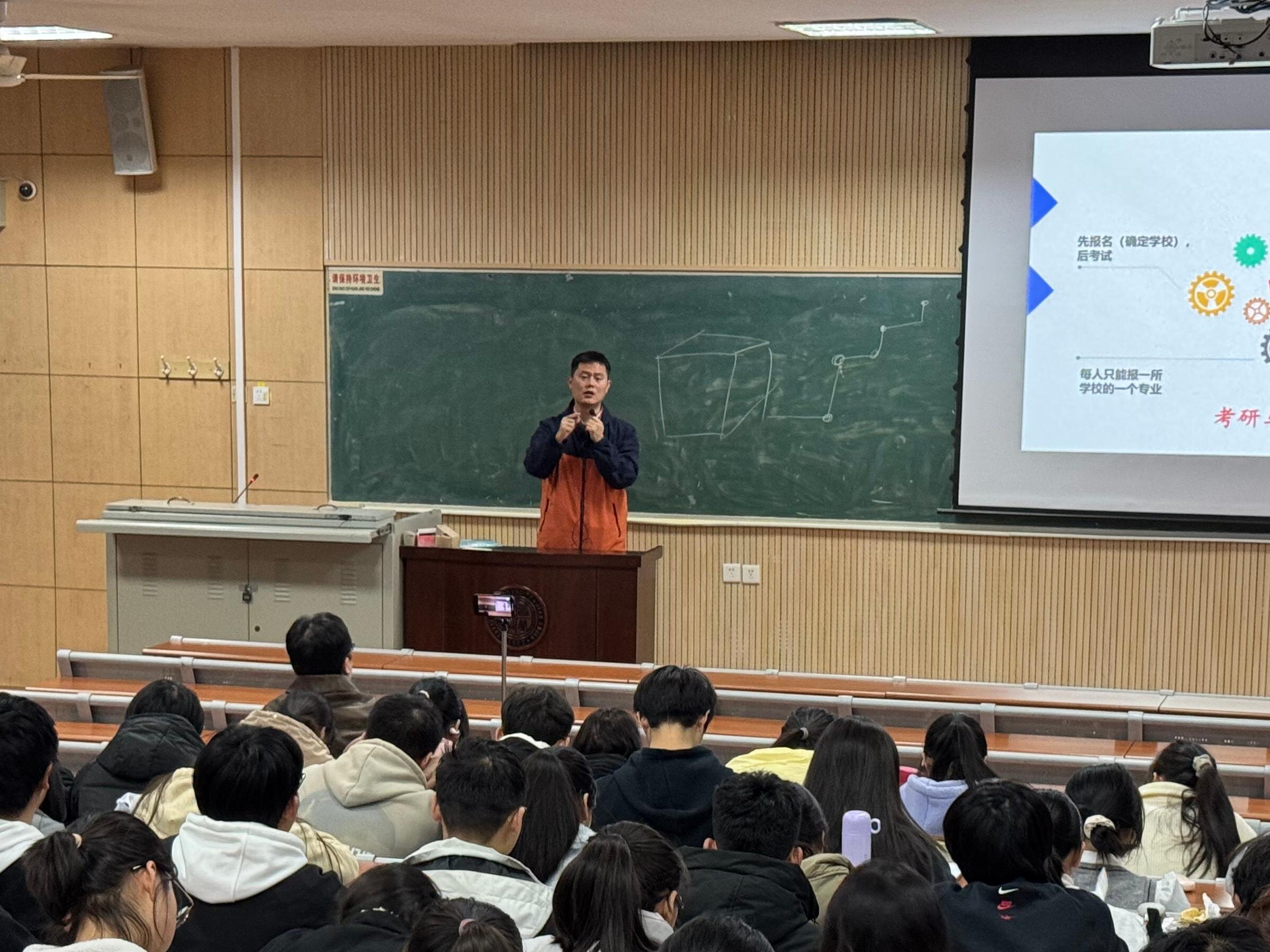 为帮助新生更好地规划职业生涯,引导新生尽早明确个人职业目标,规划未来学业与职业方向,为成长发展打下坚实的基础,12月9日晚,由“生启未来”职业生涯教育工作室组织,公司于7号教学楼307教室举办新生职业生涯教育活动——生物医药类升学规划解析会,特别邀请研途考研资深教师王墨钊老师主讲,大一年级全体员工参会,活动由辅导员张芝榕老师主持,
