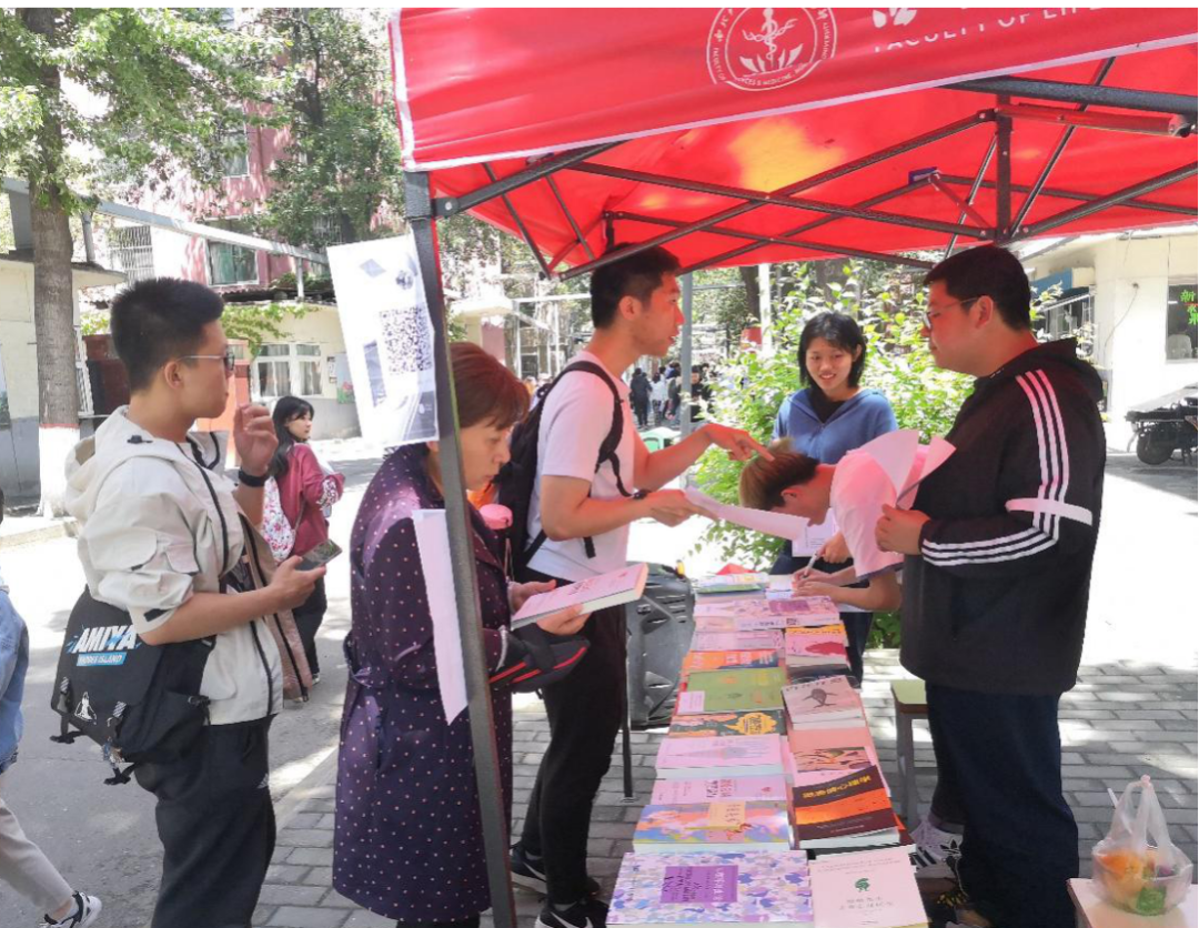外展时,心协的工作人员们提前在桌子上摆满了各种各样心理学方面的书籍,路过的同学不断被吸引,纷纷上前询问,心协的同学分别为大家耐心讲解着活动的流程。随后,有意愿的同学选取了各自想看的书,并进行现场登记、加入群聊,很快,满满一桌子的书几乎全被借走,活动由此落下帷幕。