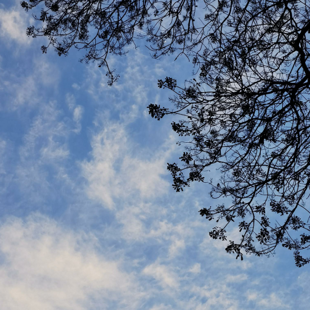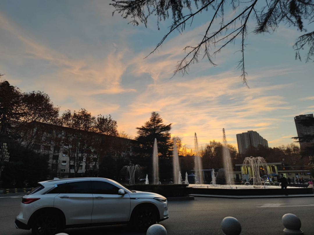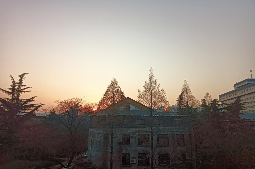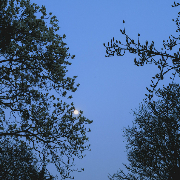 春日的傍晚,晚霞寂照,淡月笼纱,星夜无眠,树影娑婆,娉娉婷婷,取一抹月色,画一幅晚景。
