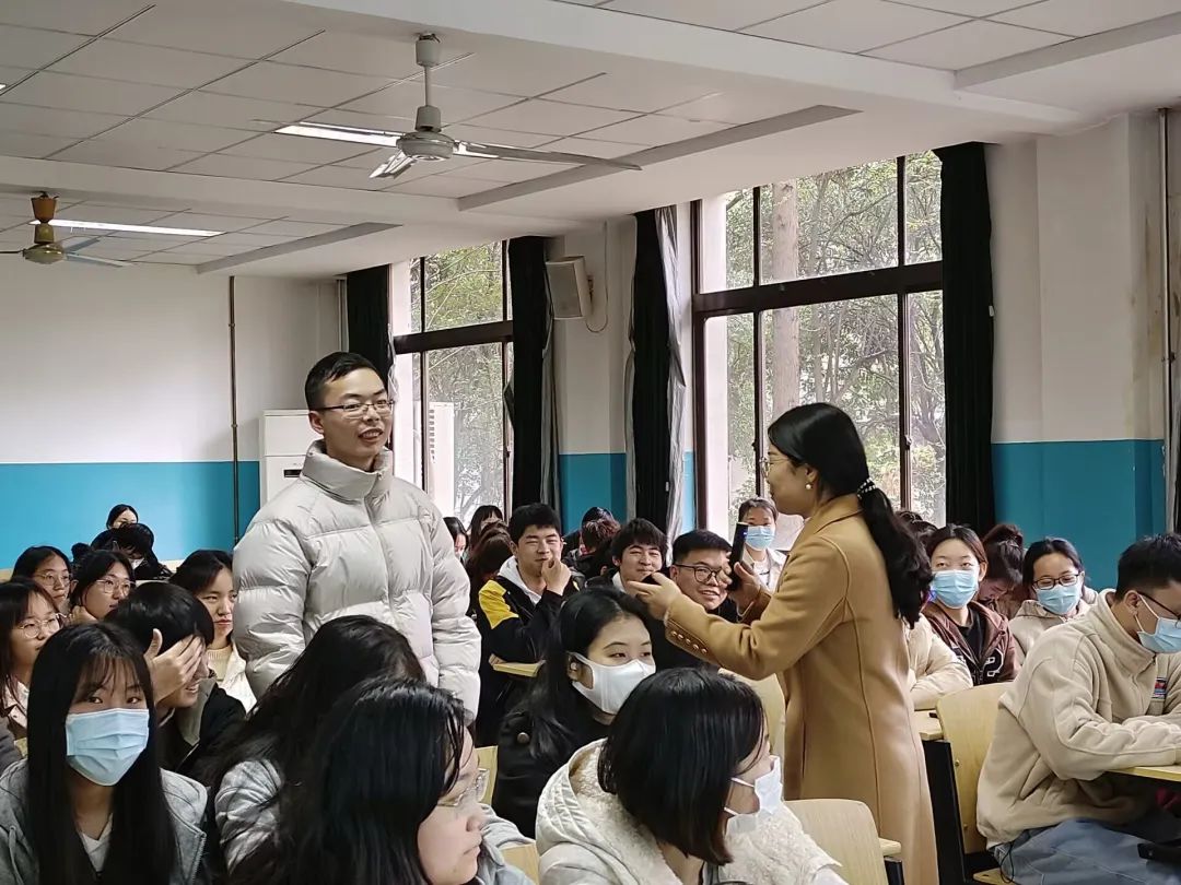 讲座伊始,王老师结合当下热点影视《黑暗荣耀》,在活跃课堂气氛的同时,了解同学们的爱情观,拉进了师生之间的距离。