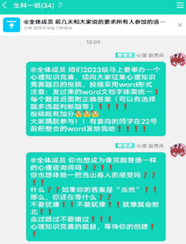 “与心灵相约,与快乐相伴”,按照公司第七届心理健康科普知识大赛相关要求,公司以心理协会为依托,以各班级心理委员为抓手,以《心理健康手册》为主线,面向全院本科生征集心理健康常识题库,与心理自助方式方法,提高老员工心理健康水平。
