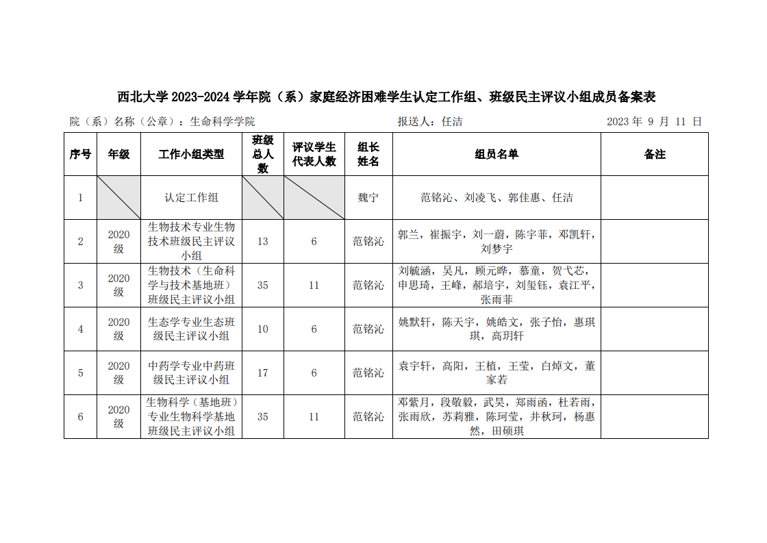 十大外围足球平台app2023年本科生家庭经济困难员工认定工作组、班级民主评议小组成员公示名单