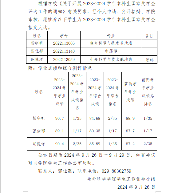 十大外围足球平台app2023-2024学年本科生 国家奖学金拟推荐名单公示