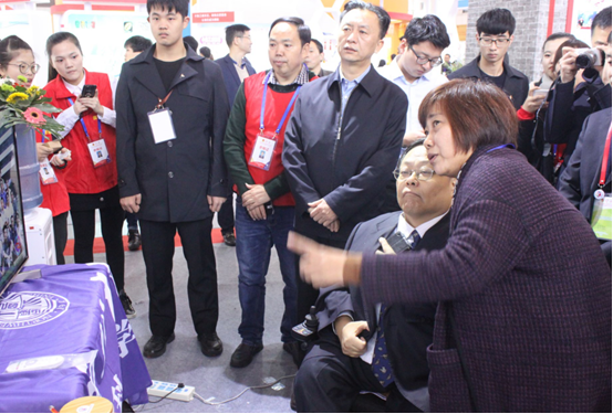 (项目指导老师高晓彩教授向中国残联副主席吕世明讲解项目)