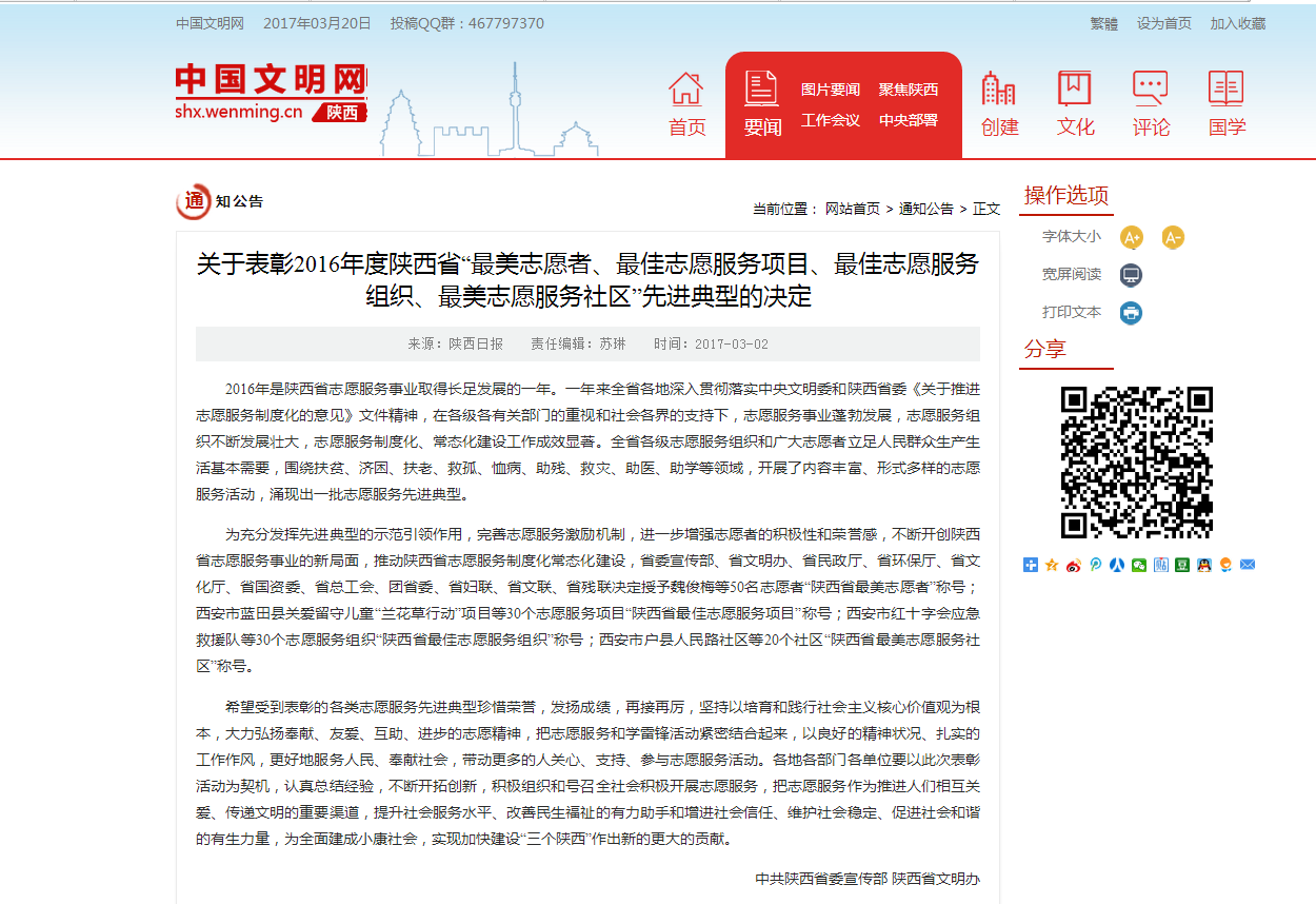 公司“秦巴山区智障儿童关爱帮扶”项目获“陕西省最佳志愿服务项目”称号