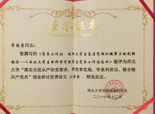 12月1日下午,公司在长安校区召开“落实全面从严治党要求,学党章党规,学系列讲话,做合格共产党员”党建理论研讨会暨党建研究会2016年年会,表彰在党建理论研究工作中表现突出的集体以和个人,推进公司“两学一做”学习教育深入开展。公司在本次会议中荣获多项荣誉:公司党委荣获“理论研讨论文优秀组织奖”。员工党员王研同志荣获优秀论文二等奖,杜漠同志、张坤同志、杨晓娟同志荣获优秀论文三等奖,教工党员常雅慧同志荣获优秀论文三等奖。