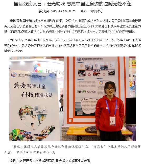 公司秦巴山区智障儿童关爱帮扶项目荣获第三届中国青年志愿服务大赛银奖