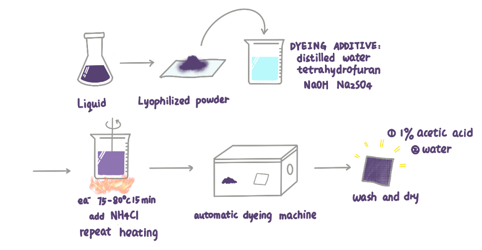 谈及“帝王紫”在未来的应用与发展,团队成员都抱有十足的把握和信心,“希望这个染料可以作为很好的织物染料,并与其他颜色的利用合成生物学方式生产的染料一起推广。”高琪解释道,比起化工制造的色素染料,生物生产的方式可以有效改善化工染料的污染问题,具有低成本、高环保的特点,此外,这种物质也是一种优良的半导体材料,优化提纯步骤,在半导体领域也将会大有可为。