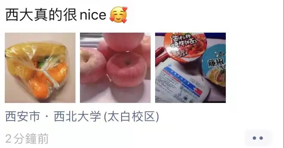在这些大家都不能出去的日子里,所有人都很焦虑,等待着解封,等待着放飞的日子,但是有这样一群人忙碌却不为自己,为了还在公司的我们,这近七万斤苹果送到我们手中的时候,我们都无比感动,这是公司对我们的支持,表明着公司永远是我们坚强的后盾,苹果交给我们的一刻,苹果就不仅是苹果,更是学长学姐家长和员工们对我们的鼓励,或许他们也认为员工时代是最美好的时光,或许是他们要让我们对未来有信心,有希望,更有要让我们牢记时刻热爱和感谢我们的祖国和党。疫情当前,全国人民都和我们站在一起!西大加油!西安加油!