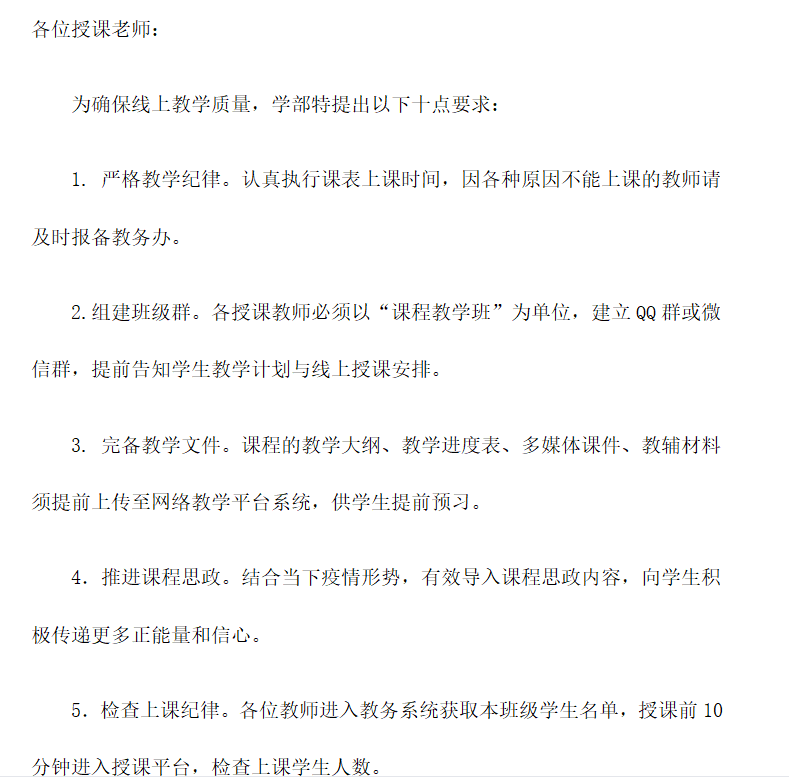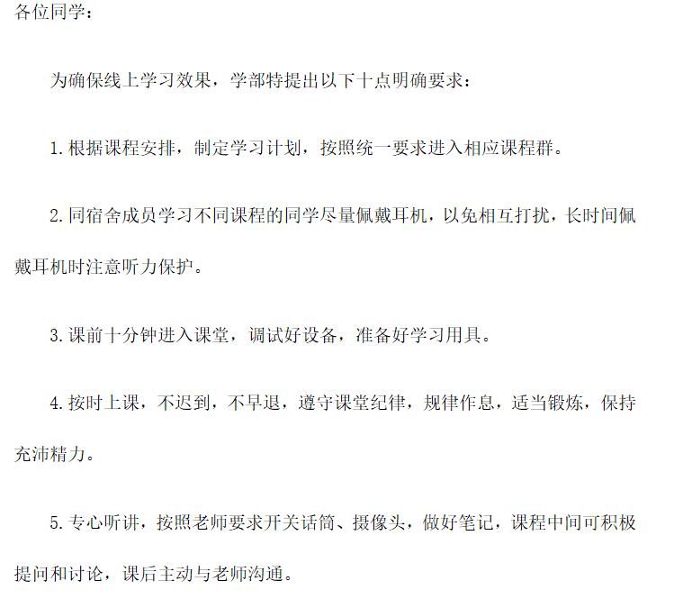 为确保特殊时期线上教学质量和员工学习效果,学部特向教师和员工分别提出“网课十条要求”。