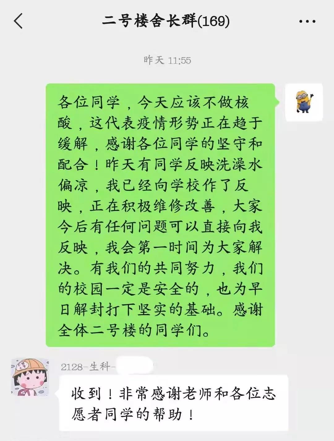 学部制定《十大外围足球平台app太白校区员工宿舍封闭管理期间员工行为规范》《十大外围足球平台app疫情防控期间员工管理补充规定》《十大外围足球平台app线上教学十条规范》,严格规范员工落实晨午检制度、全员核酸制度、隔离工作制度、线上学习制度、错峰就餐洗澡规定,全面开展心理排查,开设员工反馈通道,对员工诉求坚决做到“事事有回应,件件有着落”;秉持员工“一个也不能少”的工作原则,抗疫物资和生活关怀同步第一时间送到空军军医大学联培员工、附属医院临床员工手中,突破时空和地域局限,最大程度关怀全体员工。